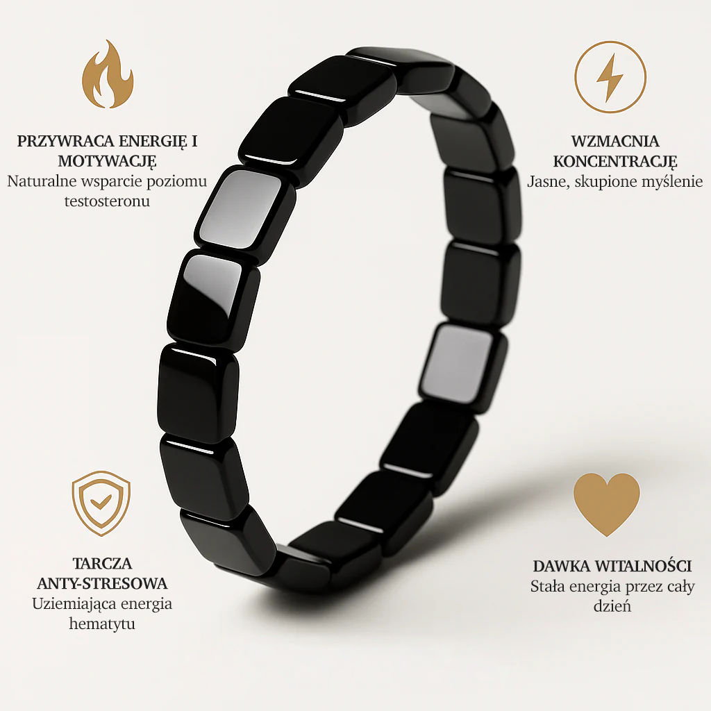Jego naturalne właściwości magnetyczne pomagają chronić organizm przed codziennym stresem, który może obniżać poziom testosteronu, jednocześnie wspierając równowagę hormonalną i witalność.